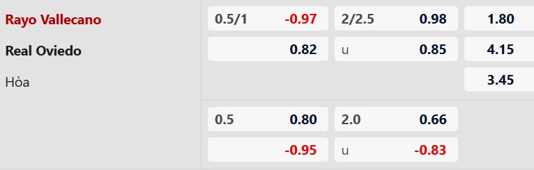 Thông tin tỷ lệ kèo Vallecano vs Oviedo: