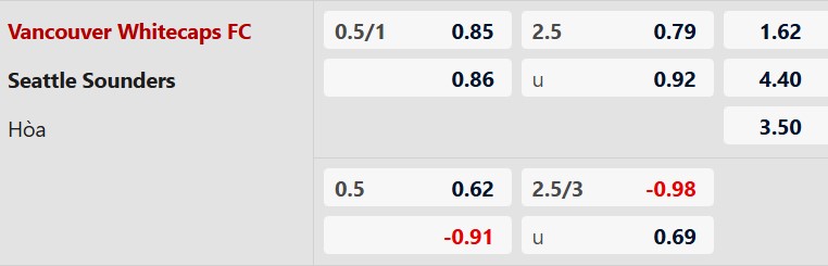 Thông tin tỷ lệ Vancouver vs Seattle Sounders: