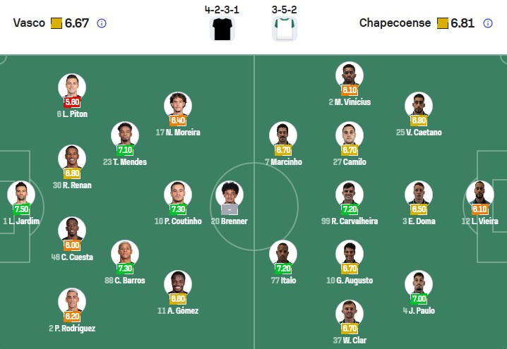 Đội hình dự kiến Vasco da Gama vs Chapecoense: