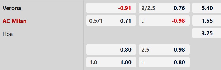 Soi kèo châu Á Verona vs AC Milan: