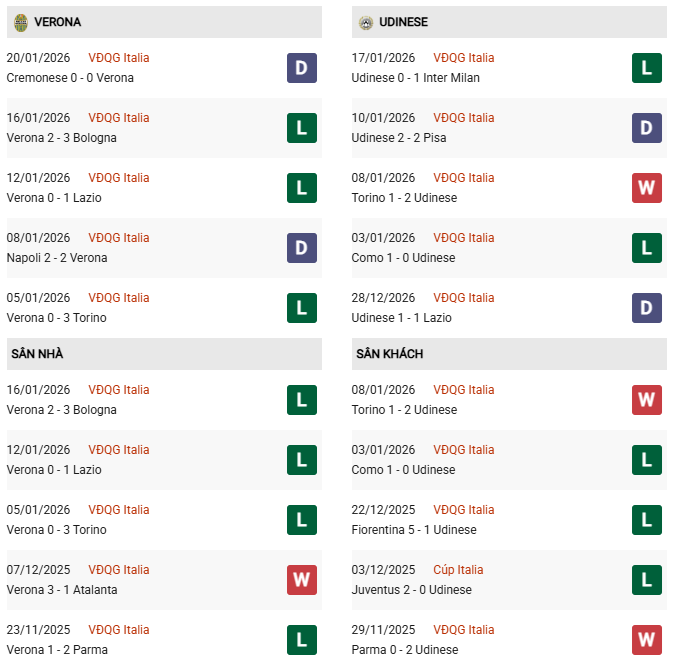 Đã khá lâu rồi Verona không để thua Udinese, nhưng đội bóng này cũng chẳng thể che giấu thực tế họ đang chơi quá tệ. Tiếp đón đối thủ đang có mặt ở nửa trên BXH như Udinese, nếu Verona một lần nữa khiến các CĐV nhà buồn lòng thì đây cũng không phải là chuyện lạ.