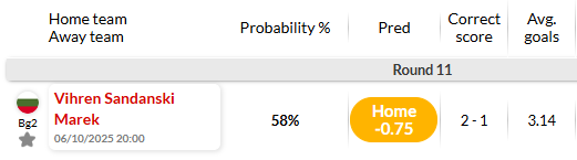 Vihren Sandanski đang mang về khá nhiều màn trình diễn ấn tượng ở giai đoạn đầu mùa giải 2025/26 vừa khởi tranh không lâu. Sau 10 vòng đấu của giải Hạng 2 Bulgaria, đội bóng này có tới 6 lần giành chiến thắng, hòa 2 và để thua trong 2 trận đấu còn lại. Vihren đang có thành tích bất bại trên sân nhà ở mùa giải này khi thắng 3 và hòa 1 sau 4 trận.