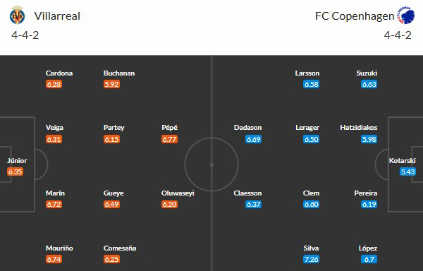 Số liệu thống kê về Villarreal gặp Copenhagen: