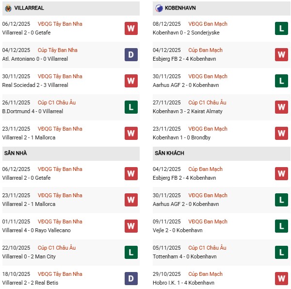 Thành tích đối đầu Villarreal vs Copenhagen: