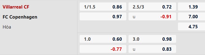 Soi kèo châu Á Villarreal vs Copenhagen: