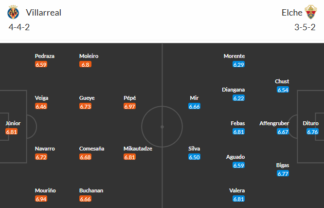 Đội hình dự kiến Villarreal vs Elche: