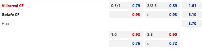 Thông tin tỷ lệ kèo Villarreal vs Getafe: