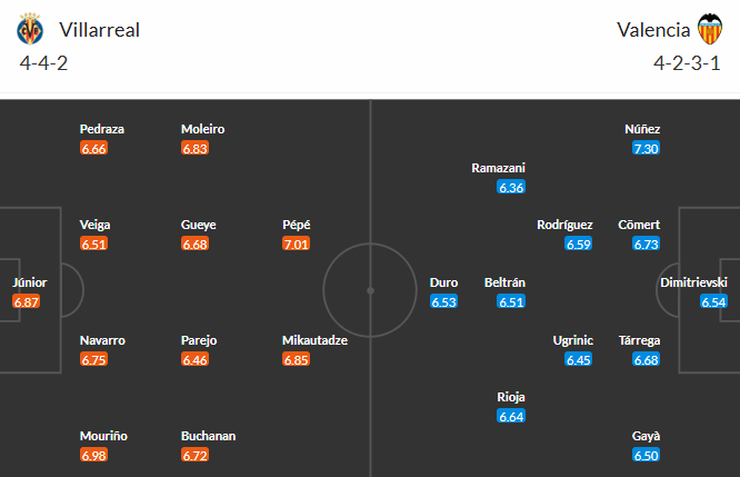 Đội hình dự kiến Villarreal vs Valencia: