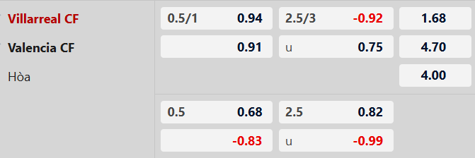 Thông tin kèo bóng đá Villarreal vs Valencia: