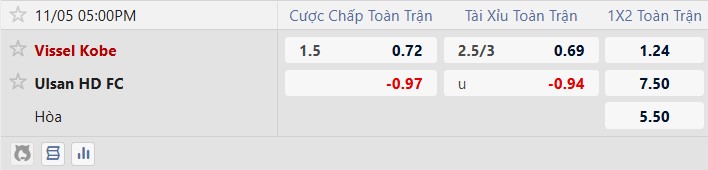 Vissel Kobe được xếp ở cửa trên với mức chấp 1 1/2 bàn, cho thấy sự vượt trội của đội chủ nhà. Thống kê chỉ ra rằng Kobe thắng kèo ở 4/5 trận sân nhà gần nhất tại đấu trường quốc nội, trong khi Ulsan HD để thua kèo ở 5/7 trận sân khách vừa qua. Với lợi thế sân bãi, phong độ tấn công ấn tượng và sự ổn định cao hơn, Vissel Kobe là lựa chọn sáng suốt.