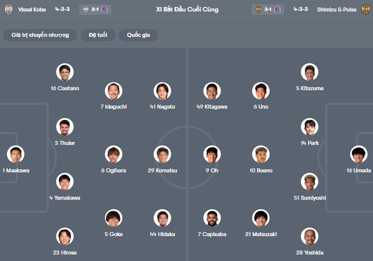 Đội hình dự kiến Vissel Kobe vs Shimizu: