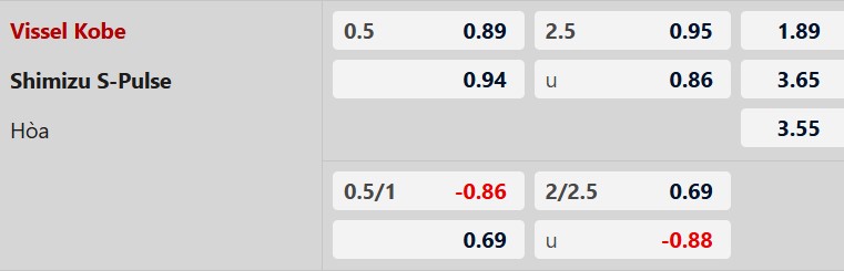 Thông tin tỷ lệ kèo Vissel Kobe vs Shimizu: