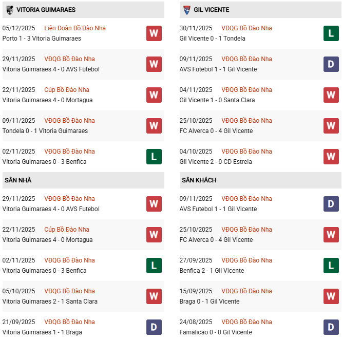 Thống kê phong độ Vitoria Guimaraes vs Gil Vicente: