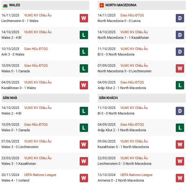 Thống kê phong độ Wales vs Bắc Macedonia: