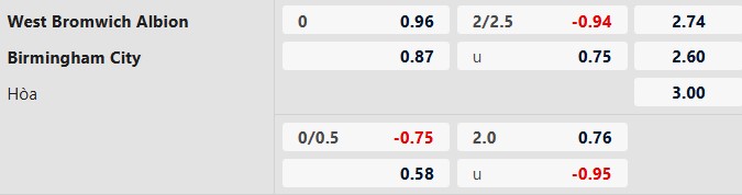 Soi kèo tài xỉu West Brom vs Birmingham: