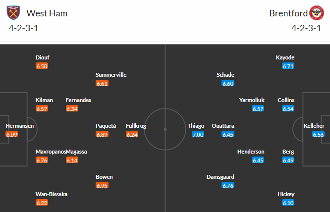 Đội hình dự kiến West Ham vs Brentford: