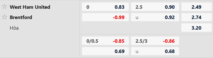 Thông tin tỷ lệ kèo bóng đá West Ham vs Brentford: