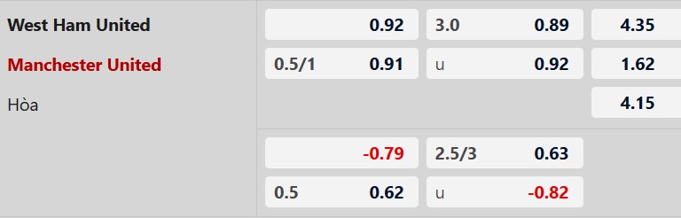 Soi kèo châu Á West Ham vs MU: