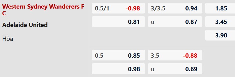 Thông tin tỷ lệ cược Western Sydney vs Adelaide: