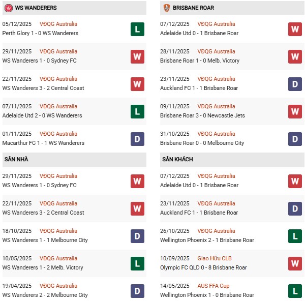 - Western Sydney thắng 1, hòa 5, thua 4 trong 10 trận gặp Brisbane gần đây.