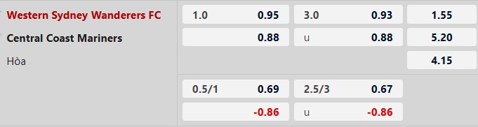 Thông tin tỷ lệ cược Western Sydney vs Central Coast: