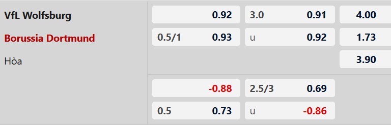 Thông tin tỷ lệ kèo bóng đá Wolfsburg vs Dortmund: