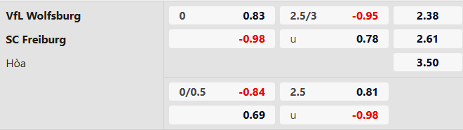 Thông tin tỷ lệ bóng đá Wolfsburg vs Freiburg: