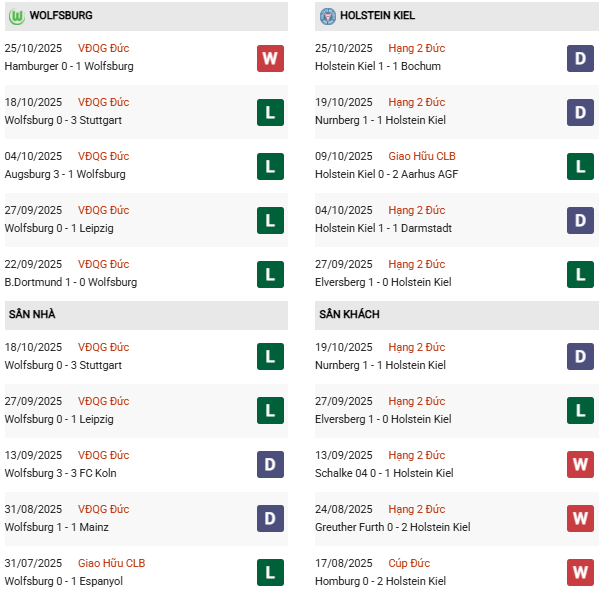 Thống kê phong độ Wolfsburg vs Holstein Kiel: