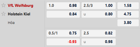 Thông tin tỷ lệ bóng đá Wolfsburg vs Holstein Kiel: