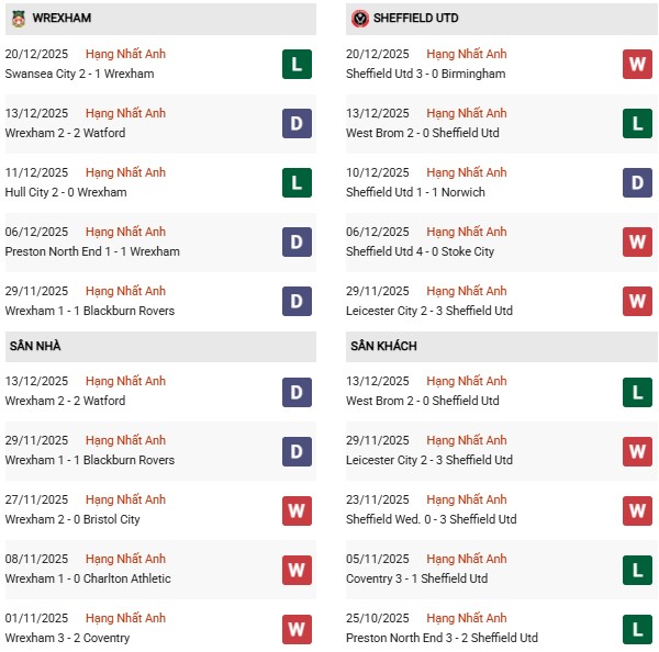 - Trên sân nhà, Wrexham hòa 1, thua 1 trước Sheffield United.