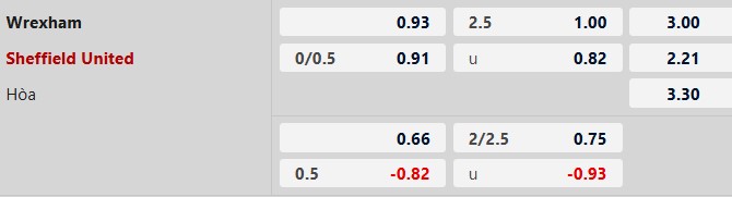 Thông tin tỷ lệ bóng đá Wrexham vs Sheffield United: