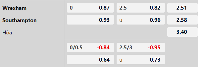 Thông tin tỷ lệ bóng đá Wrexham vs Southampton: