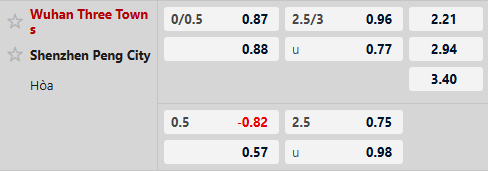 Thông tin tỷ lệ kèo Wuhan Three Towns vs Shenzhen: