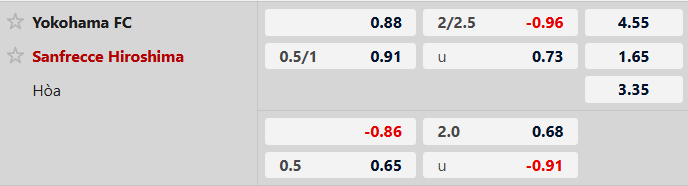 Yokohama FC thi đấu nỗ lực trong thời gian qua nhưng Hiroshima lại ở đẳng cấp khác. Vì vậy, Hiroshima được xếp ở cửa trên trận này với kèo chấp 3/4 bàn. Đội khách cũng đang vào phom khi bất bại trong 7 trận liên tiếp và thắng kèo trong 5/7 trận. Trong 2 trận đối đầu gần đây với Yokohama FC thì Hiroshima đều là đội giành chiến thắng.