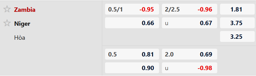 Thông tin tỷ lệ kèo Zambia vs Niger: