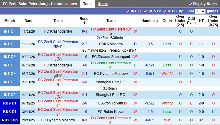Dưới sự dẫn dắt của HLV Sergei Semak, Zenit duy trì phong độ cao với 8 chiến thắng, 1 trận hòa và chỉ 1 thất bại trong 10 trận gần nhất. Đặc biệt trên sân nhà, họ thắng tới 9/10 trận gần đây – một thống kê cho thấy sự áp đảo cả về thế trận lẫn hiệu suất ghi bàn. Zenit thường kiểm soát bóng vượt trội, triển khai tấn công biên linh hoạt và tận dụng tốt các tình huống cố định.