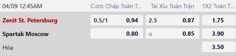 Soi kèo châu Á Zenit vs Spartak Moscow: