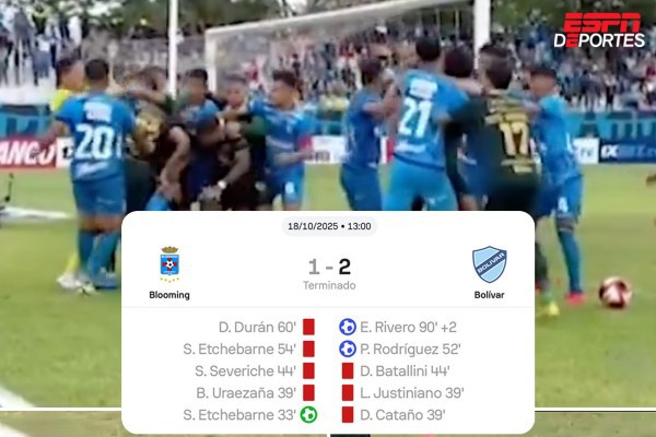 Rạng sáng 19/10, hơn 30 phút cuối của màn so tài giữa Blooming và Bolívar chỉ chứng kiến 15 cầu thủ có mặt trên sân, khi trước đó 7 cầu thủ bị truất quyền thi đấu.